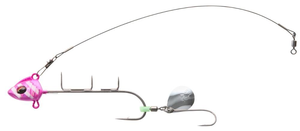 引き抵抗軽減!ダート形状ヘッド。貫通力抜群のサクサスフック親針。ショートバイト対応のアシストフック、タチウオの鋭い歯から守るステン線ショートリーダー、エサ巻きステン線、ケミホタルが装着できるケミホルダー付き。