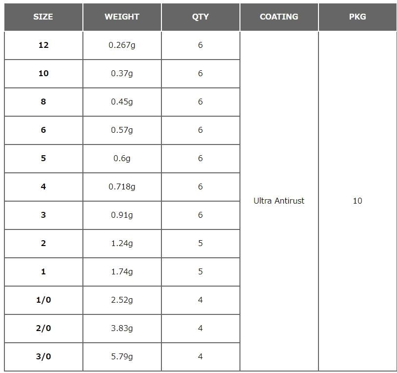 シャープでいて頑丈な針先は、硬い口でも容易に貫通させる。UAコーティングを採用。腐食に非常に強く、強度を長く保持。きめの細かなコーティングは貫通時の摩擦抵抗を最小減に抑制する。