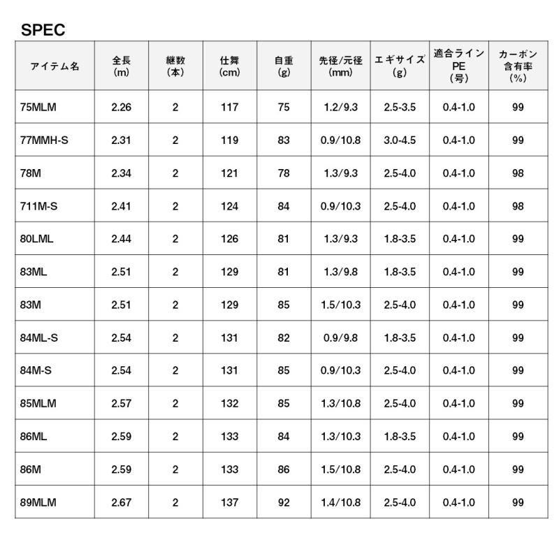 V-JOINTα搭載により、ワンピースに近いシャクり心地を実現。ソリッドティップ(−S)モデルは繊細かつ、高感度なメガトップ採用。