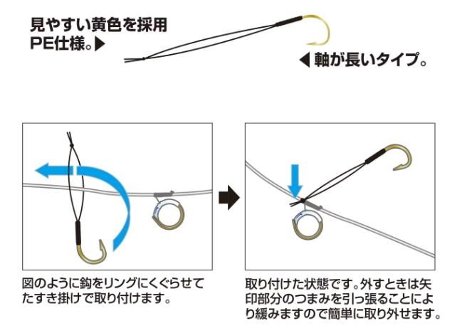 ●持ちやすく: 鈎は軸の長いタイプを採用。つまみやすい形状になっています。