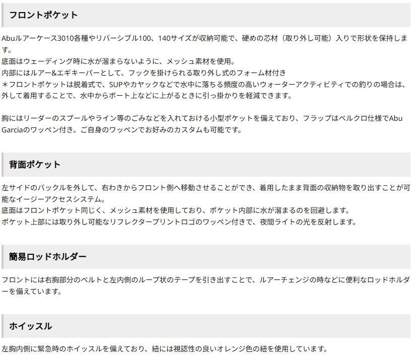 商品情報 アブガルシア Abu Garcia システムゲームベスト System Game Vest / ウェア ベスト