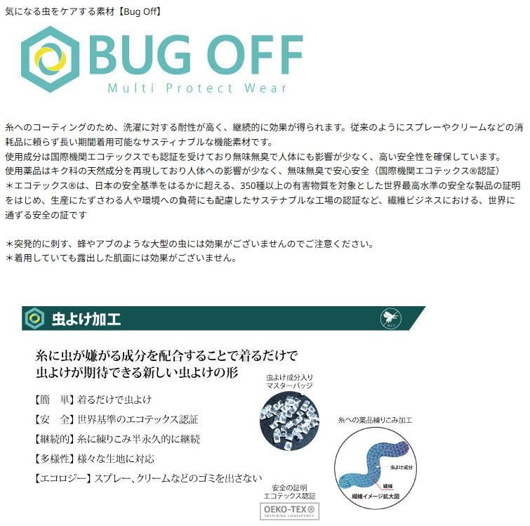 キク科の天然成分を再現した薬品を糸の段階で練り込むことで、虫が衣服に止まったとき近寄りにくくなります。