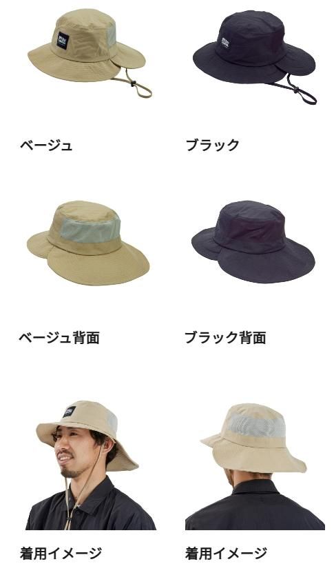 日差しの強い日やフィールドなどで首周りの日焼けを防ぐことが可能で、素材には撥水性のあるナイロン素材を使用、後ろ面はメッシュ素材で切り替えておりますので通気性も良いハットです。