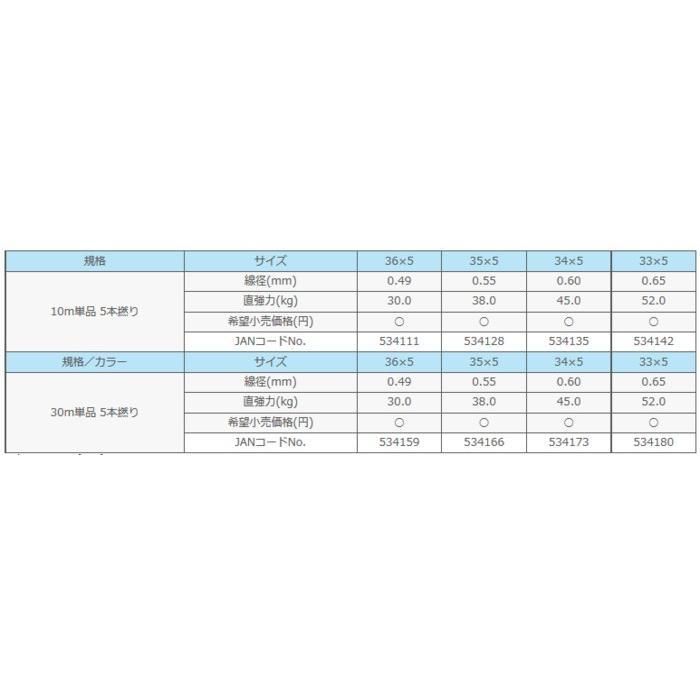 ●張りと強度の最適バランスに拘りぬいた特殊5本撚り製法。強力と擦れ性能に優れ、アタリを明確に伝えます。