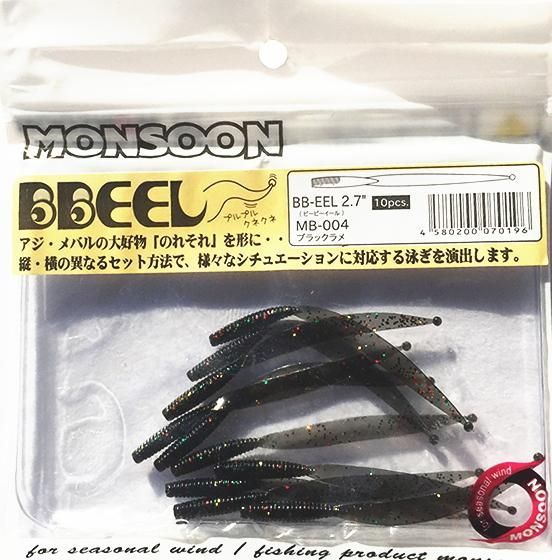 アジ メバル ワーム MONSOON BB-EEL モンスーン BBイール 2.7インチ #ブラックラメ / アジング メバリング ライトゲーム ルアー 釣具 メール便可 【本店特別価格】