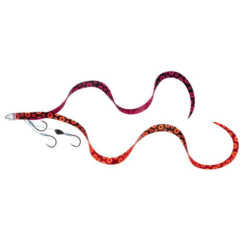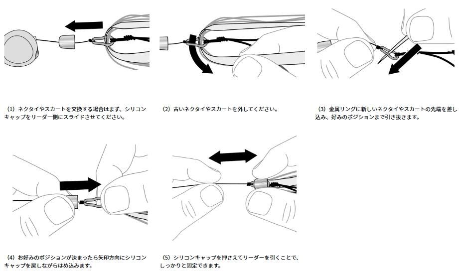 ダイワ独自の3D素材を採用したかつてない超ロングネクタイの「紅牙シリコンネクタイ3Dやり過ぎカーリー」と3本針を採用した替えユニット。