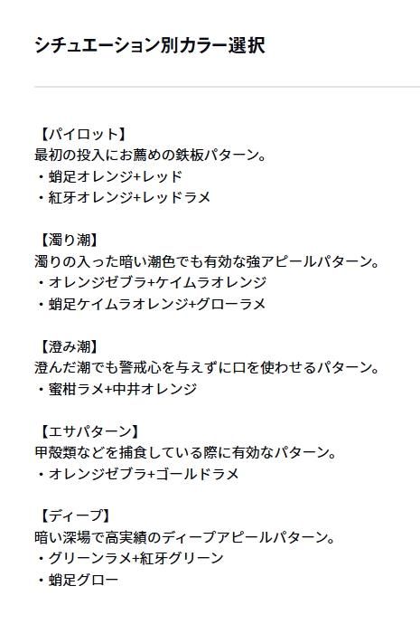 特にディープエリア・高活性時の鯛に有効な仕様とすることで、ここぞという時に頼れるユニットとなっている。
