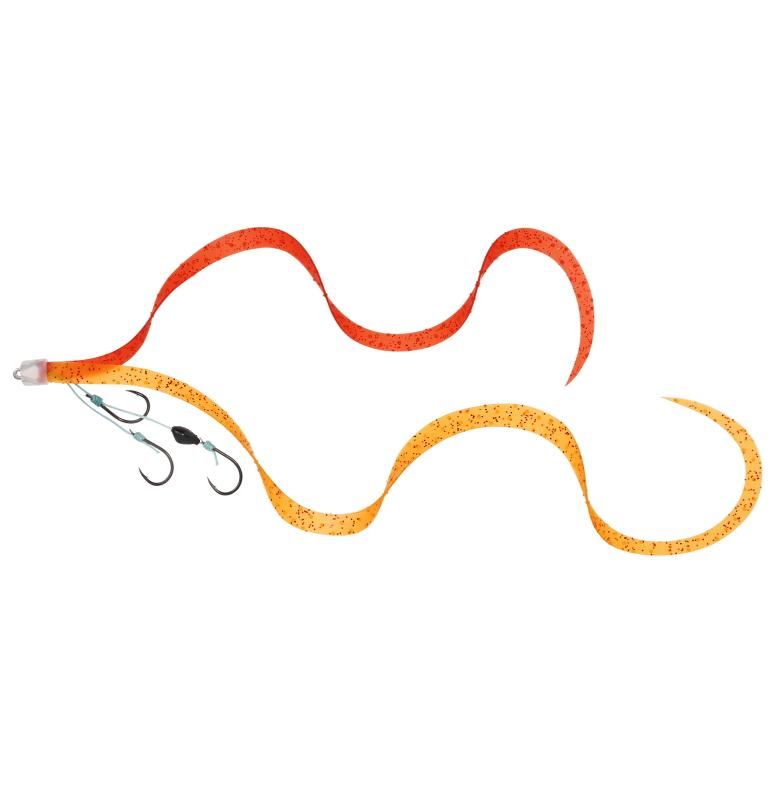 ダイワ独自の3D素材を採用したかつてない超ロングネクタイの「紅牙シリコンネクタイ3Dやり過ぎカーリー」と3本針を採用した替えユニット。