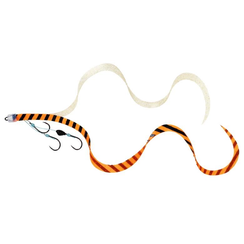 ダイワ独自の3D素材を採用したかつてない超ロングネクタイの「紅牙シリコンネクタイ3Dやり過ぎカーリー」と3本針を採用した替えユニット。