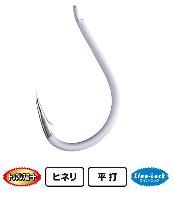 より鋭い鈎先のために「トップレスコート」を施しました。軸部には敢えて「ホワイトカラー」をコーティングし、オキアミがより際立って見えるようにしました。好奇心の強いチヌにエサの存在をアピールします。