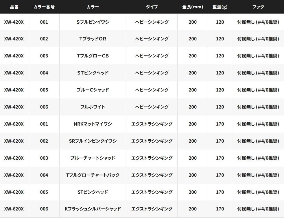 フック:付属無し※推奨フック/リング:トリプルフック#4/0×2(各10g前後)/ヘビークラス200lb