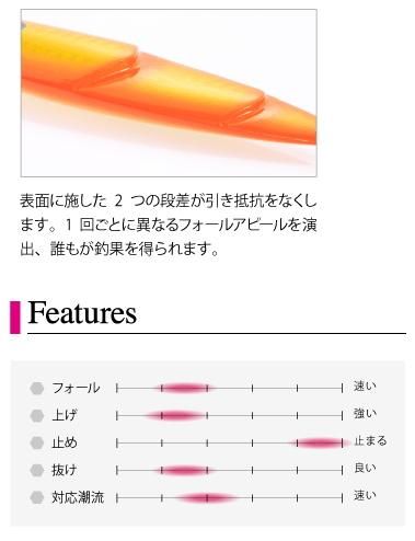 上げのアクションではロッドティップのわずかな反動で即座に方向転換、わずかな脱力で即座にステイ。タフコンディションにこそ進化を発揮する究極のスロースタイルメタルジグ。