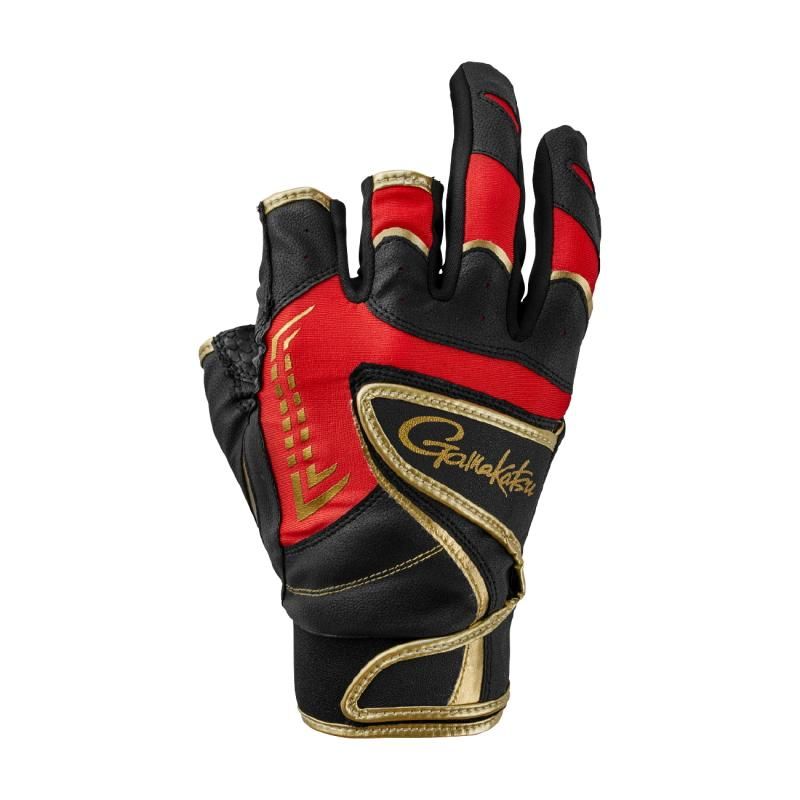 がまかつ ダブルベルトフィッシンググローブ(3本切) GM-7303 ブラック×レッド LLサイズ / 手袋 gamakatsu メール便可 【本店特別価格】