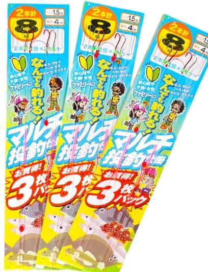 マルシン漁具 マルチ投釣り3枚セット 2本針 8号 (8-1.5-4) / キス カレイ 投げ釣り 仕掛け 釣具 メール便可 【本店特別価格】