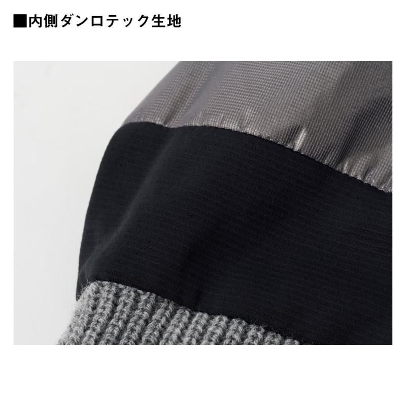 裏地にアルミとカーボンの防風透湿素材を採用することで、冷たい冷気の浸入を防ぐニットキャップ。