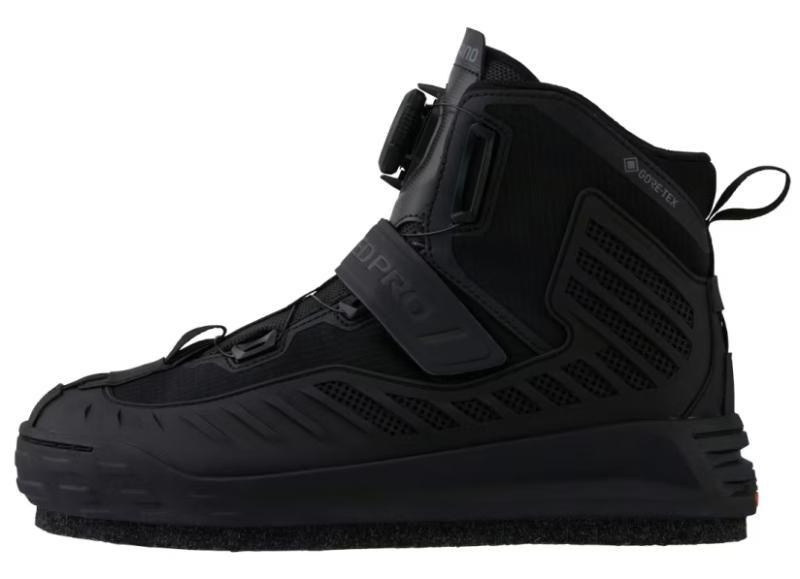 履き心地、機能、耐久性と磯シューズに求められる全ての要素を研ぎ澄ましたリミテッドプロゴアテックスシューズ。足型は日本人向けの幅広甲高設計でフィット感が更に向上。大きくなったBOA®フィットシステムのダイヤルと太いワイヤーが足全体を包み込むように締め上げ、今までにないフィット感を実現。定評のある甲ベルトが、前下がりの磯でも爪先を保護してくれます。自身でソール交換が可能なジオロックソールは、面積が大きくなり不安定な磯でも更なる安定感を獲得。透湿防水ブーティーにはゴアテックスを採用と荒ぶる磯の上で足元に一切気を使わず、釣りに集中できる磯シューズの最高峰モデルです。