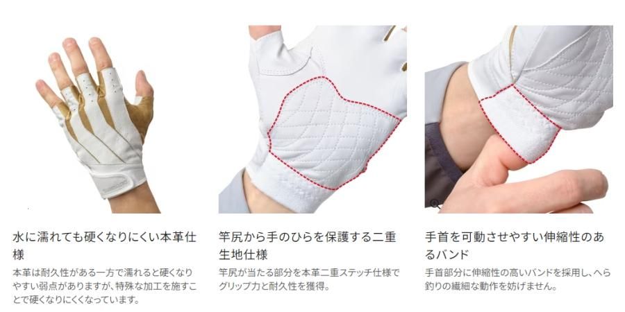 濡れてもしなやかな本革採用のへら用グローブ(左手用)