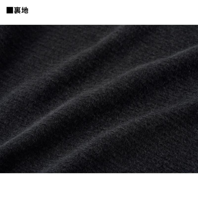 レイヤリングしやすい肉厚感に微起毛を施し、やさしい肌触りを実現。全身を包み込むようにふんわり柔らかく、暖かい触感の生地で、快適な衣服内環境を整えるよう開発。裏側には汗冷え防止の疎水性(水分を含まない)のポリプロピレン素材を織り交ぜることで冬場の汗冷えによる体温低下を軽減。