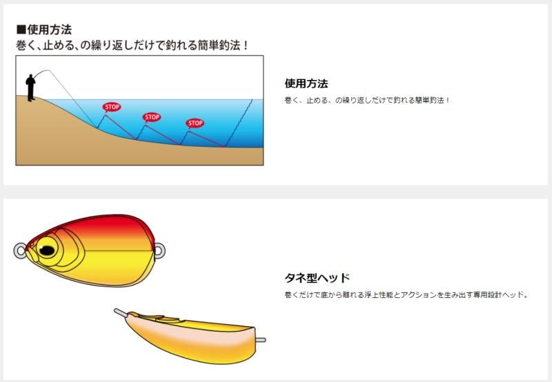 いよいよマキッパファミリー秘蔵の「巻きの種」が解禁。マキノタネは、フレアーベイトとシリコンラバーテールによる独特のコンビネーションアピールで、イカやタコ、ゴカイ等を捕食する魚に驚異的な爆釣力を発揮。使い方はいたって簡単。「底を取って巻く」、「浮き上がったらまた落とす」の繰り返し。たったこれだけです。誰にでも手軽に使えて圧倒的な釣果を叩きだしてしまうことから、メガバス開発陣からは、これまで「秘蔵」とされてきたほど。