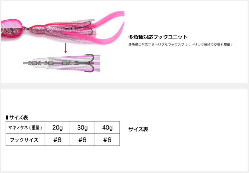 いよいよマキッパファミリー秘蔵の「巻きの種」が解禁。マキノタネは、フレアーベイトとシリコンラバーテールによる独特のコンビネーションアピールで、イカやタコ、ゴカイ等を捕食する魚に驚異的な爆釣力を発揮。使い方はいたって簡単。「底を取って巻く」、「浮き上がったらまた落とす」の繰り返し。たったこれだけです。誰にでも手軽に使えて圧倒的な釣果を叩きだしてしまうことから、メガバス開発陣からは、これまで「秘蔵」とされてきたほど。