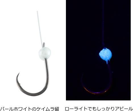 カワハギ糸付針に留め付シリーズが復活!パールホワイト+ケイムラで高アピール!