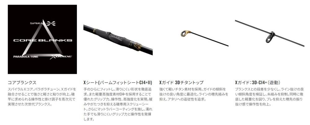 徹底的な感度と操作性で積極的に「掛けて獲る」性能を追求し、より高弾性ブランクスへ進化。ロッドにすばやい復元力が備わったことにより、仕掛けのキャスト〜ファイトまで意図した動作に対して、ロッドが瞬時に反応。アングラー自らが次の動作を正確に予見可能で、コントローラブルな調子を実現。また、不意の大物へのパワーをスムーズに受け止めるためにテーパーを再設計。それにより、先調子の操作性、攻撃的なフッキング、すばやいファイトに加え、胴調子に匹敵するハリスの糸持ちが並立し、常に主導権を制する。