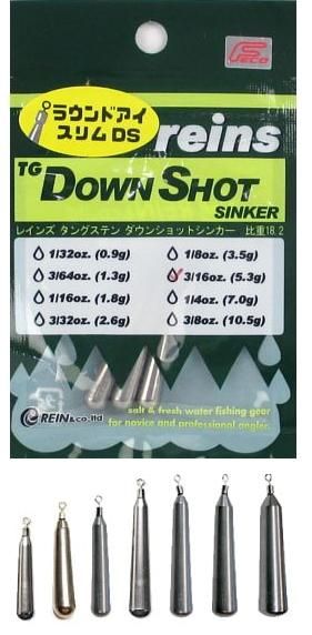 レインズ reins TG スリムダウンショットシンカー 1/4oz 7.0g / タングステン ワーム ルアー オモリ つり具 メール便可 【本店特別価格】