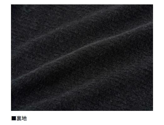 レイヤリングしやすい肉厚感に微起毛を施し、やさしい肌触りを実現。全身を包み込むようにふんわり柔らかく、暖かい触感の生地で、快適な衣服内環境を整えるよう開発。裏側には汗冷え防止の疎水性(水分を含まない)のポリプロピレン素材を織り交ぜることで冬場の汗冷えによる体温低下を軽減。