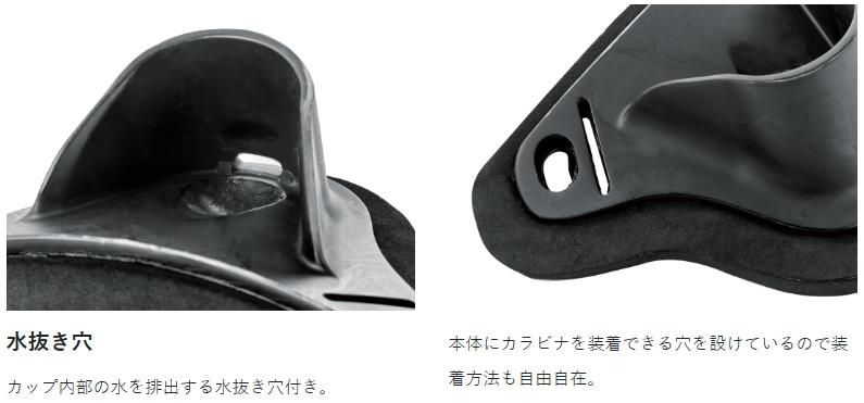 ●本体にカラビナを装着できる穴を設けているので装着方法も自由自在。