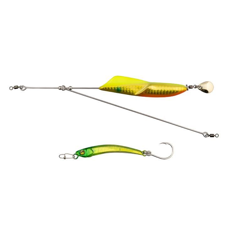 シラスサイズのマイクロプラグを遥か沖へ飛ばし、マイクロベイトパターンを攻略する『ジェットロー』の機構をベースに、本体の浮き上がりを抑えてレンジキープ力に特化させた中層狙いのモデル。ベイトはいるもののボイルがなく、トップウォーターへの反応も無いような状況に最適で、中層に沈んでいる魚へと直接アプローチすることが可能です。