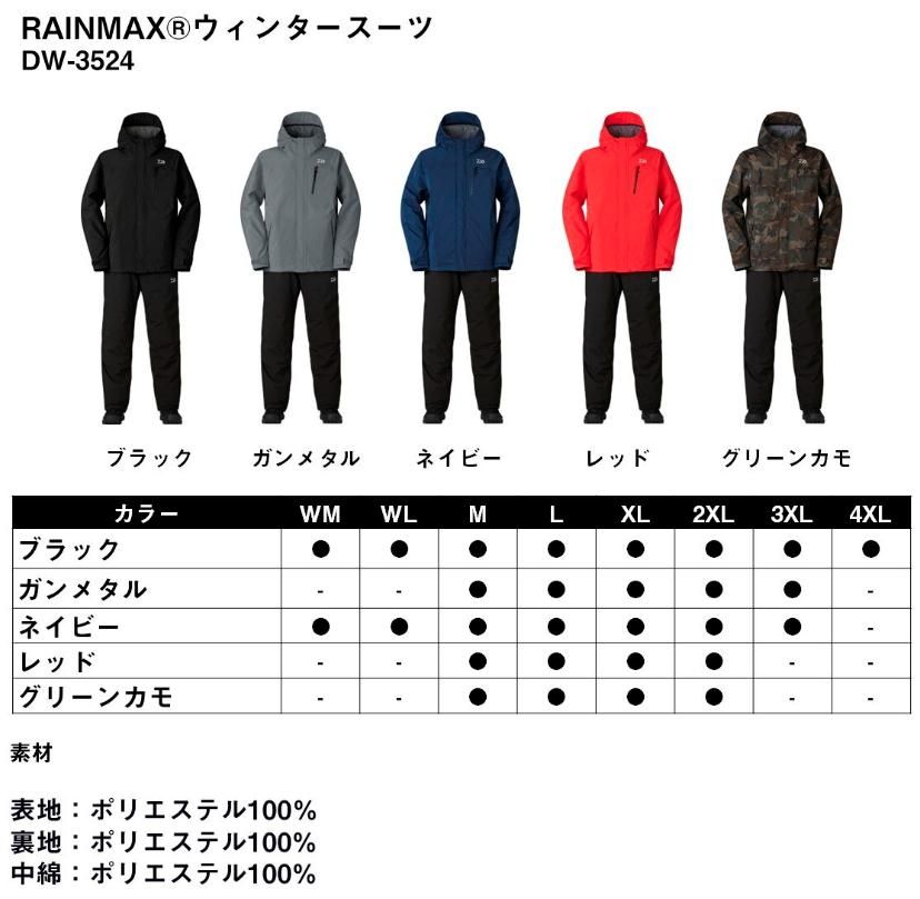 商品情報 ダイワ DAIWA グローブライド RAINMAX ウィンタースーツ DW-3524 / フィッシングスーツ 雨合羽 フィッシングウェア 防寒着 レインスーツ