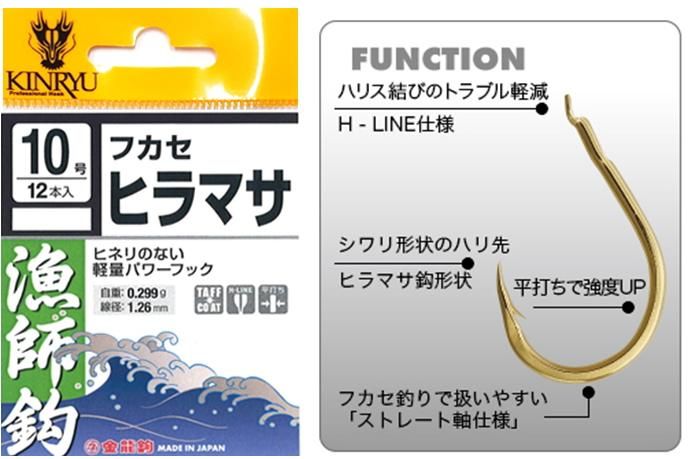 金龍鈎 フカセヒラマサ 12号 金 / 平政 釣り針 つり具 メール便可 【本店特別価格】