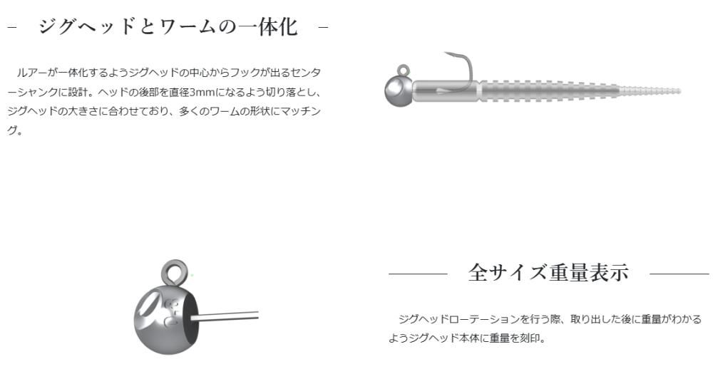 サイズ:#10フック/0.5g, 0.8g, 1g, 1.2g, 1.5g