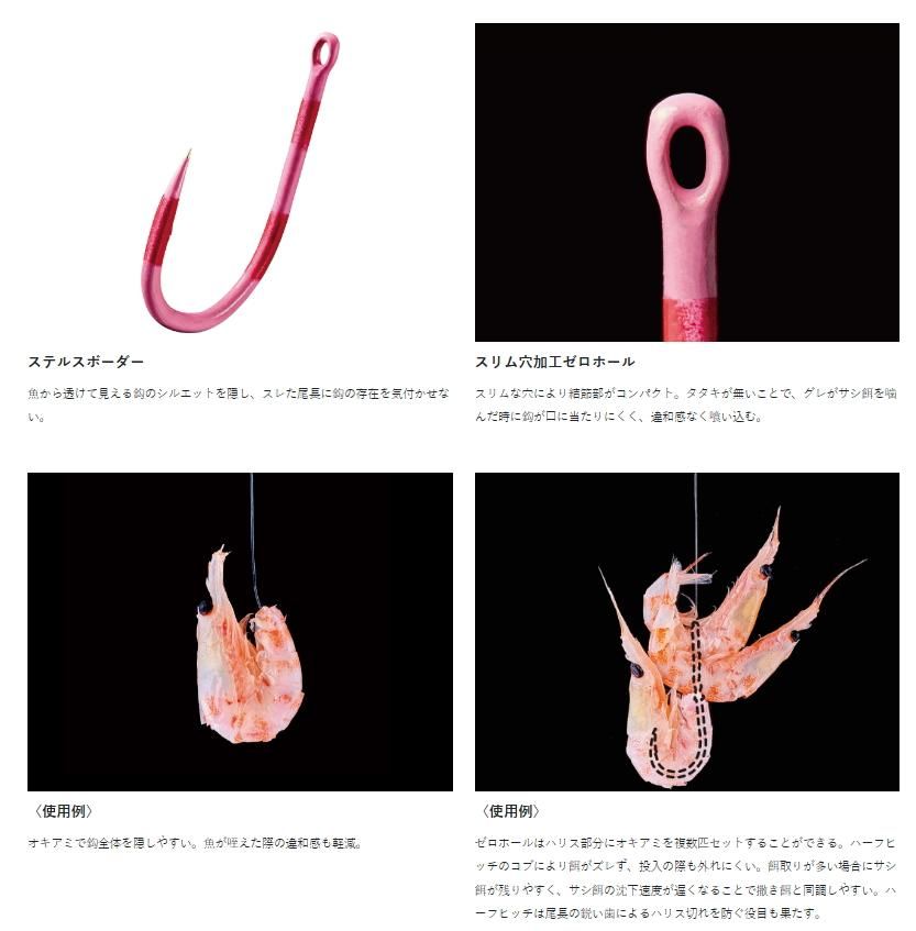 ごく僅かなネムリを持たせた鈎先形状により、スレた尾長特有のウキを軽く押さえる一瞬のアタリを鈎掛かりに持ち込む。違和感を感じると即座に鈎を吐き出す浅棚でのスレた大型尾長狙いに対応。