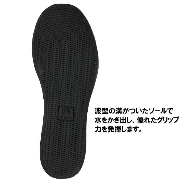 波型の溝のついたソールで水をかき出し優れたグリップ力を発揮します