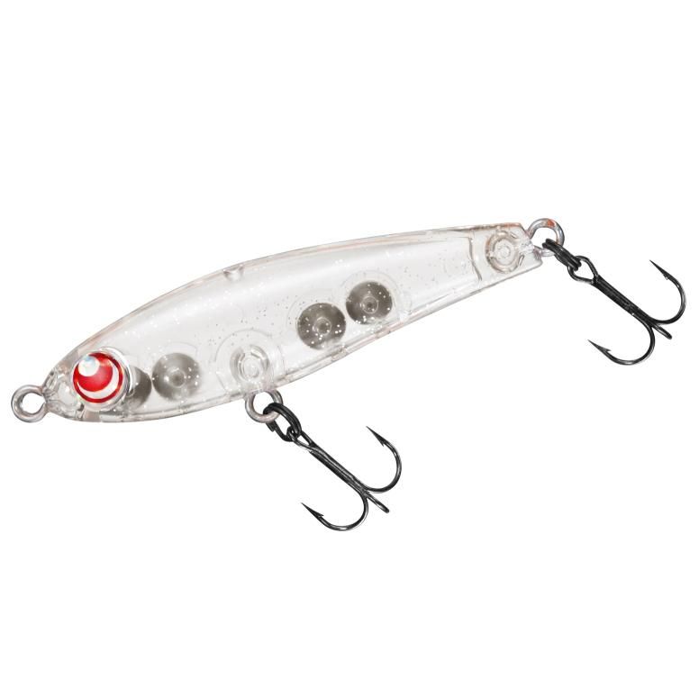 岩崎林太郎監修。沖のデカメバルを攻略するぶっ飛びシンキングペンシル。50mmのボディには、アクションが破綻しないギリギリまでウエイトを詰め込んだ。また、空気抵抗となるボディの凹凸を無くし、テールを細く絞ることで遠投性能を最大限に高め今までの同サイズでは投げ切れなかった場所への攻略を可能にした。アクションはリトリーブの速さで変化する2WAYアクション。スローリトリーブでは、ハイピッチロールとボディのフラッシングでアピールし、リトリーブスピードを上げればウォブルを伴ったロールアクションで広範囲にアプローチできる。フォール中はボディが揺れながら落ちるシミ―フォールでバイトチャンスを逃さない。体高のあるフラットサイドボディは弱いアクションでもしっかり水を押し、ロールアクションによるフラッシングがメバルへ強烈にアピールする。