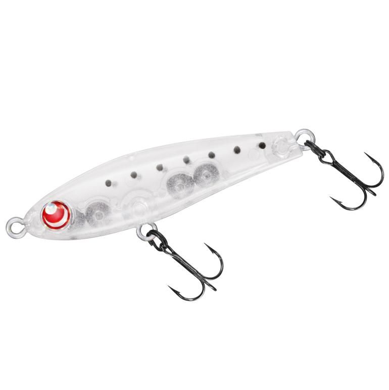 岩崎林太郎監修。沖のデカメバルを攻略するぶっ飛びシンキングペンシル。50mmのボディには、アクションが破綻しないギリギリまでウエイトを詰め込んだ。また、空気抵抗となるボディの凹凸を無くし、テールを細く絞ることで遠投性能を最大限に高め今までの同サイズでは投げ切れなかった場所への攻略を可能にした。アクションはリトリーブの速さで変化する2WAYアクション。スローリトリーブでは、ハイピッチロールとボディのフラッシングでアピールし、リトリーブスピードを上げればウォブルを伴ったロールアクションで広範囲にアプローチできる。フォール中はボディが揺れながら落ちるシミ―フォールでバイトチャンスを逃さない。体高のあるフラットサイドボディは弱いアクションでもしっかり水を押し、ロールアクションによるフラッシングがメバルへ強烈にアピールする。
