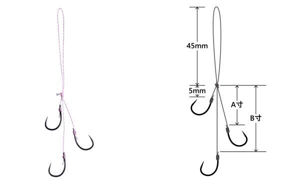 がまかつ ラグゼ 桜幻 カスタムフック スーパークイック 糸付 ロングループ 3本鈎 SS / 鯛ラバ 仕掛け メール便可 【本店特別価格】