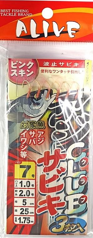 お買い得サビキ 3枚入 ファイブスター アライブ アジCLUBサビキ ピンクスキン 針7号 ハリス1.0号 幹糸2.0号 / 仕掛け メール便可 【本店特別価格】