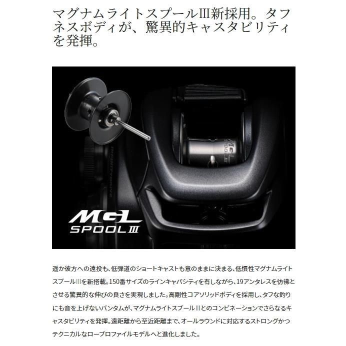 φ35/19mmと前モデルよりスプールを大径化、ナロー化することによって遠心ブレーキとの相性を高め、またラインガイドをやや前方へ移すことで19アンタレスを彷彿する伸びやかなキャストフィールを獲得しました。