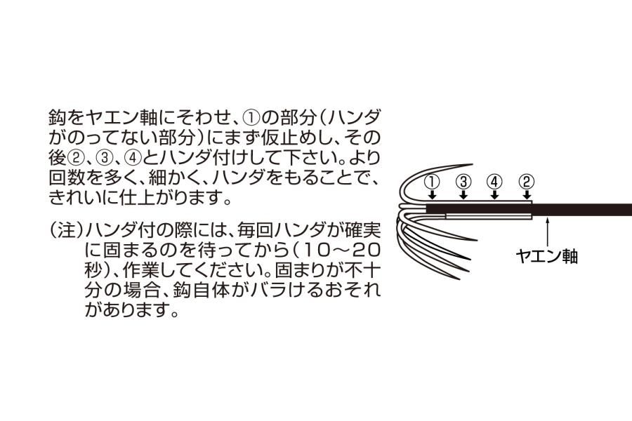 イカを確実に捕え、身ギレの少ない太さ、形状を考えた設計。完全スレバリタイプです。