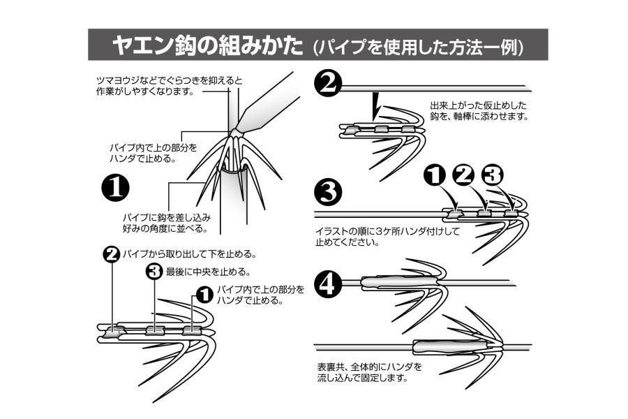 お好みの形状でヤエンの傘鈎が組める自作用のバラ鈎。刺さりこみ抜群のスレタイプ(長軸)です。