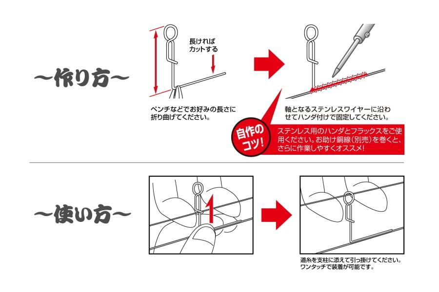 好みの長さにカットし折り曲げて軸棒にセットしてください。