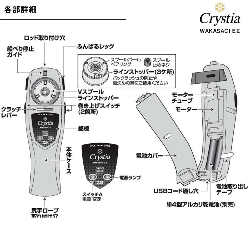 商品情報 ダイワ DAIWA グローブライド クリスティア ワカサギ EII CRYSTIA WAKASAGI EII / ワカサギ用電動リール