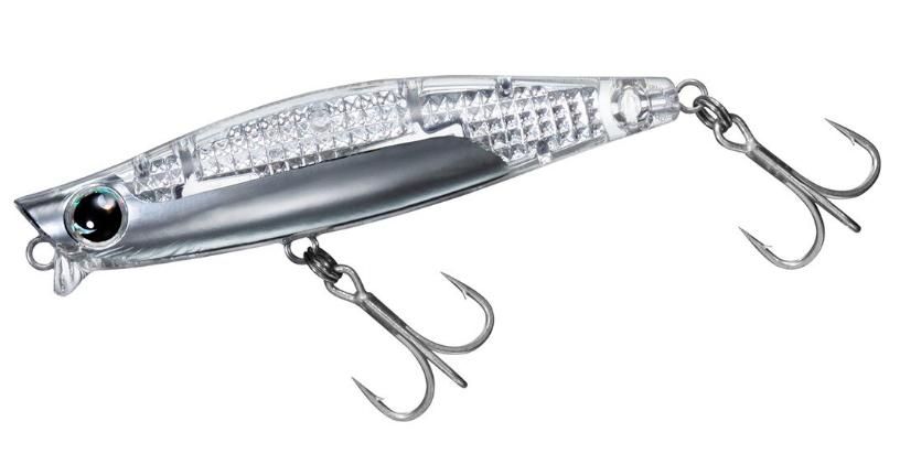 レーザーインパクトは、3Dマルチ反射構造により「イワシ」等と同様の高輝度反射光を多方向に放ち、「本物の誘いを遠くまで」を実現。更に、泳いでいる時の反射光の明滅まで再現。夜間や日陰のわずかな光でもベイトフィッシュと同様、昼夜・場所を問わず光でターゲットにアピール。揚力を生み出す独特な上ゾリ形状のヘッドと計算され尽くしたショートリップを携えたガルバ73Sは、着水直後から浮き上がりやすく、また横風時にラインを煽られても水面を滑ることなく水面直下をレンジキープして引いてくることのできる”リップ付きシンキングペンシル”。無数のプロトサンプルテストの末に、上へあがろうとする”揚力”と下へ潜ろうとする”レンジキープ力”といった相反する2つの効果を絶妙なバランスでマッチさせたことにより、水面直下というレンジをキープしながら安定したアクションで引いてくることが可能。73mmという小さなボディながら体高と厚みをもたせた形状は、最高のキャストフィールで狙ったところへ着水。頭から切り込むワイドなスイングアクションで表層を強く意識したシーバスにナチュラル且つ強烈にアピールしバイトを誘う。ロッドを立てて引いてくれば引き波を発生させることが可能で、ロッドを倒せば水面から数十センチといった水面直下のレンジを引いてくることも可能。
