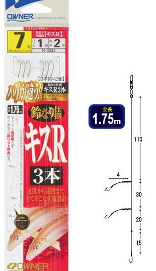 オーナー 鈴なり仕掛 キスR 3本 N-3383 針7号 ハリス1号 幹糸2号 / 投げ釣り 仕掛け つり具 メール便可 【本店特別価格】