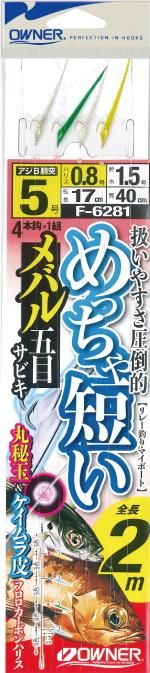 オーナー めっちゃ短いメバル五目サビキ F-6281 針6号 ハリス0.8号 幹糸1.5号 / 仕掛け つり具 メール便可 【本店特別価格】