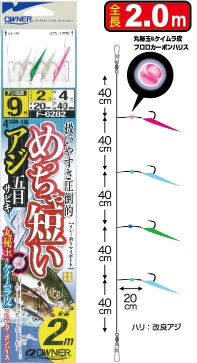 オーナー めっちゃ短いアジ五目サビキ F-6282 針11号 ハリス4号 幹糸6号 / 仕掛け つり具 メール便可 【本店特別価格】