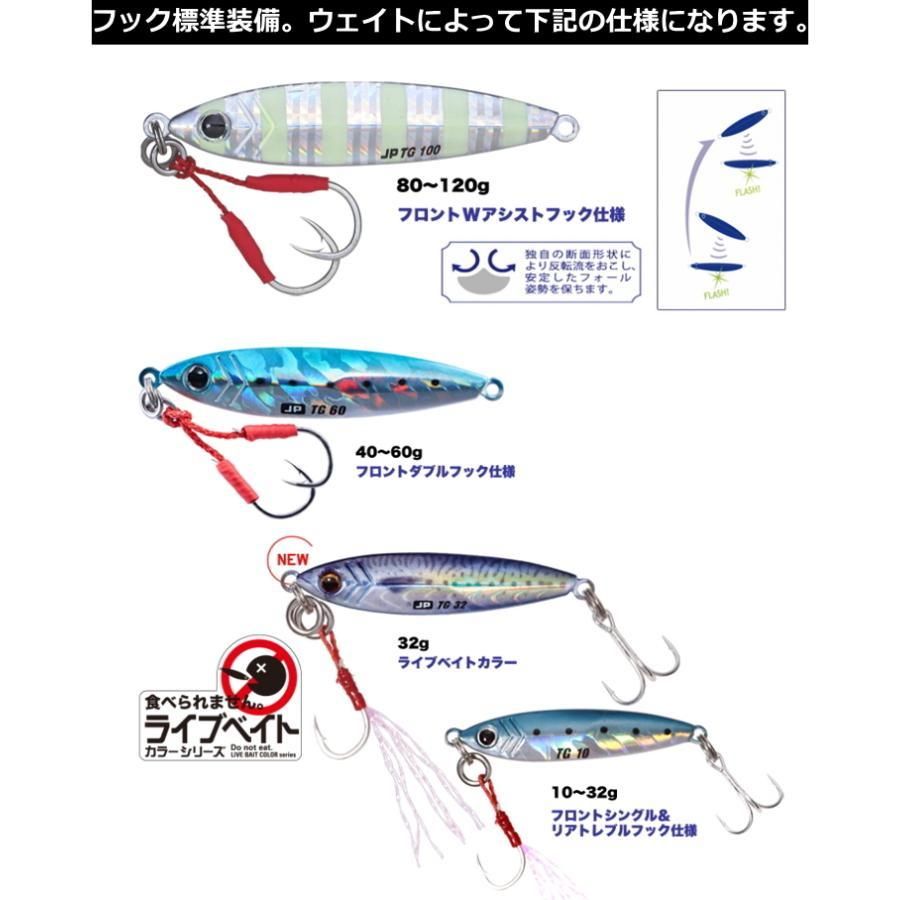さらに、生感覚にライブベイトカラーが登場!!シブい状況やプレシャーの掛かった状況で威力を発揮する最強ルアーになること間違いなし!ショアジギングからオフショアのスーパーライトジギング(SLJ)にも活躍するでしょう。