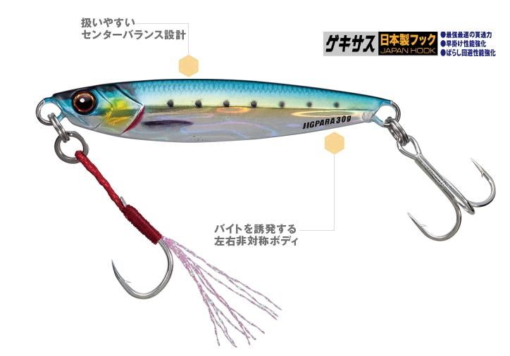 フィールド、ターゲット、アクションを選ばずあらゆる状況に対応するキング・オブ・スタンダードジグ、それが「JIGPARA」(ジグパラ)。ショアジギングにおいて飛距離が最大の武器となるのは言うまでもないだろう。その空気抵抗の小さいコンパクトシルエットは圧倒的な飛距離を生み出します。またハイピッチからスローまであらゆるジャークに対応する引き重り感の少なさと、喰わせのタイミングを誘発させやすいセンターバランスは使い手を選びません。その日の第1投目から最後の1投まで100%の信頼感でキャストできるド定番ジグの決定版です。